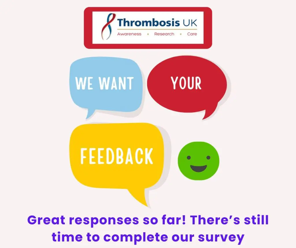 Thrombosis UK is conducting a strategic review in 2026 to better serve those affected by venous thromboembolism (VTE). Please complete this survey by 10th April 2026. It takes under 5 minutes and will help shape our future!